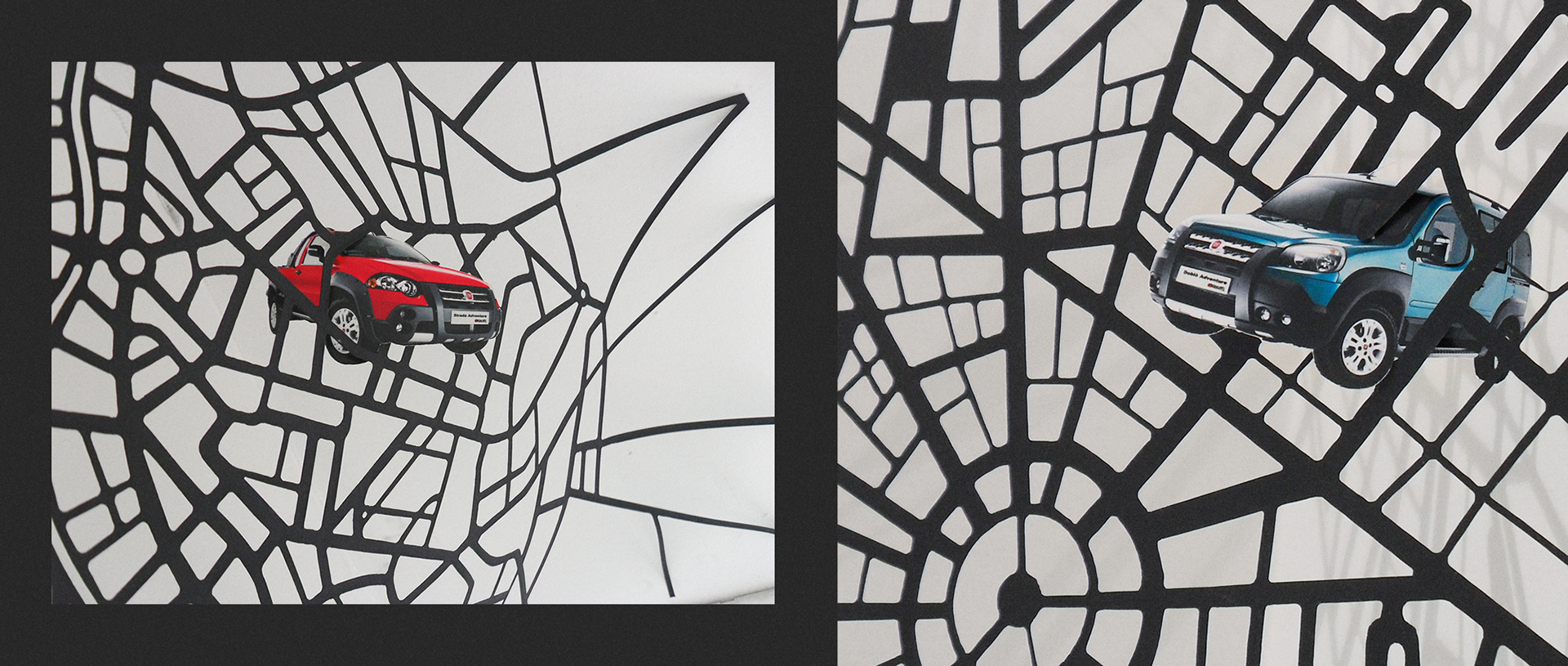 Cobweb City / Fiat Adventure. Launch campaign for Fiat's off-road cars. The posters and ads were cut with a special laser, showing how the city can make you feel trapped.